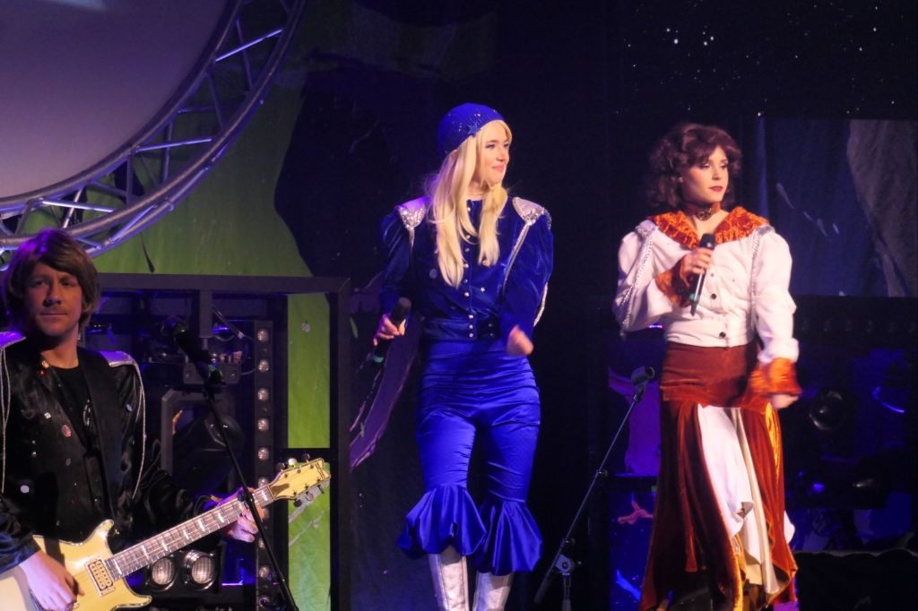 Die internationale Truppe bot ein Abba Tribute Konzert das sich hören und sehen lassen konnte. Sie kopierten die Originalkostüme, das Bühnenbild und die Choreographien. Die beiden Frauen mit dem entsprechenden Aussehen sangen dann die Titel perfekt mit dem typischen Abba Zweiklang der Stimmen.